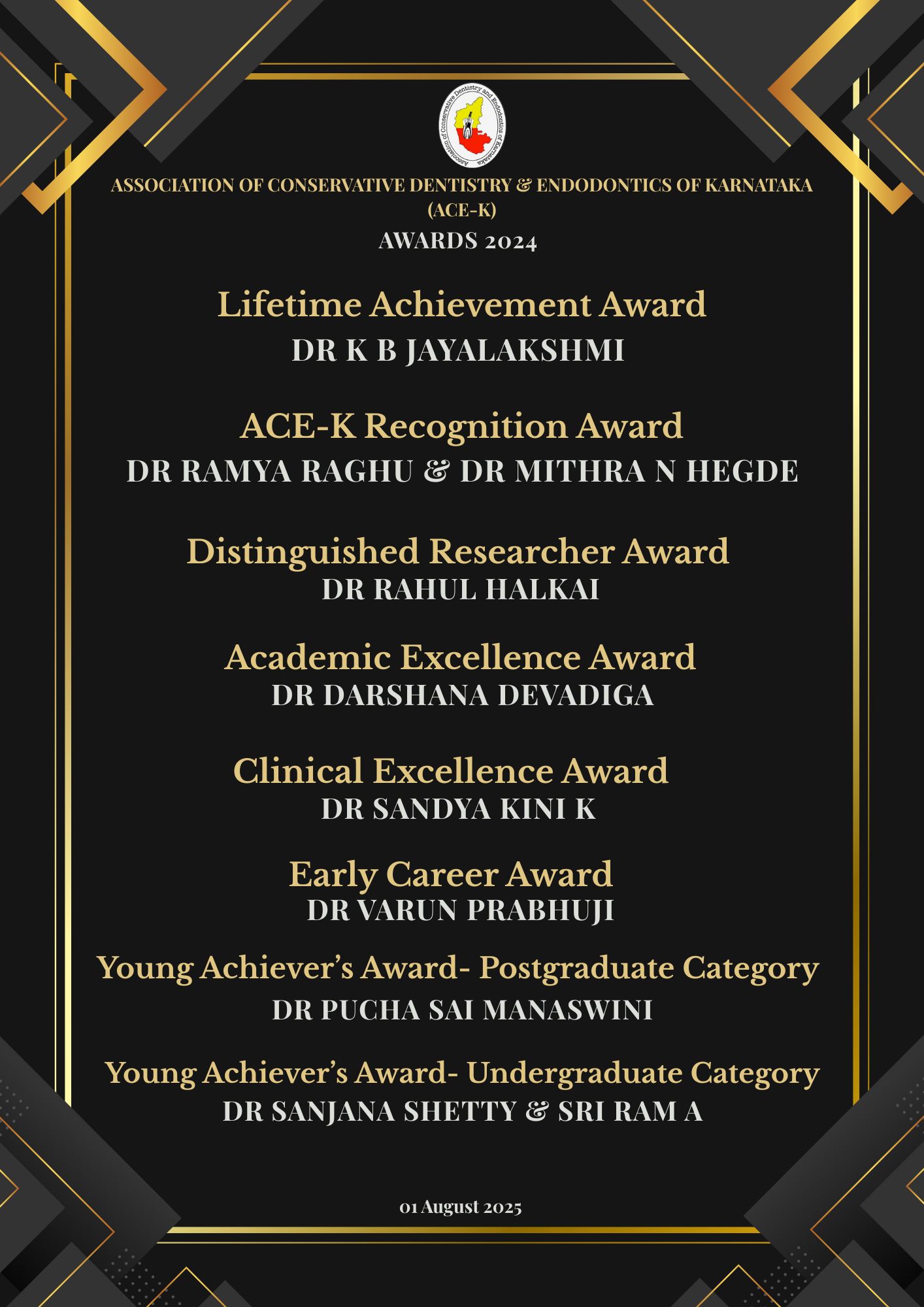 ASSOCIATION OF CONSERVATIVE DENTISTRY AND ENDODONTICS OF KARNATAKA AWARDS – 2019