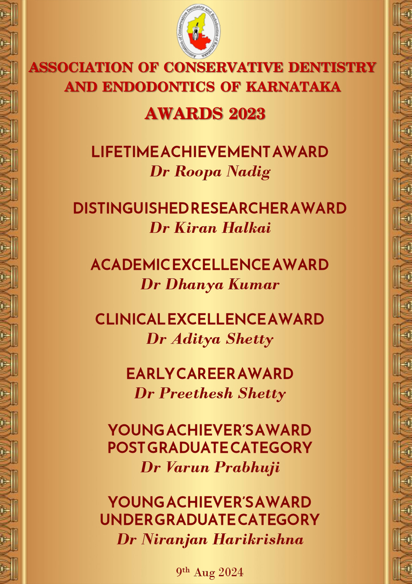 ASSOCIATION OF CONSERVATIVE DENTISTRY AND ENDODONTICS OF KARNATAKA AWARDS – 2020