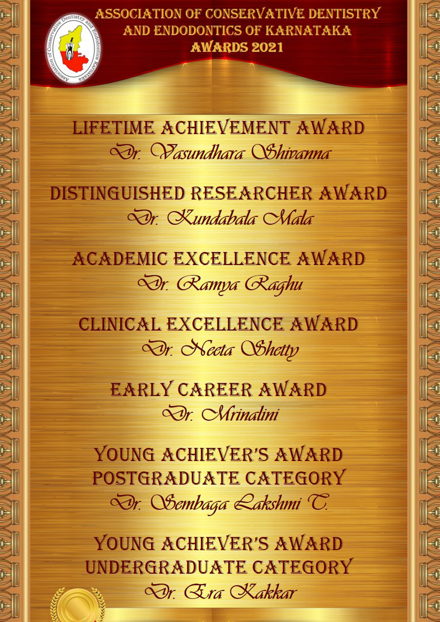ASSOCIATION OF CONSERVATIVE DENTISTRY AND ENDODONTICS OF KARNATAKA AWARDS – 2020